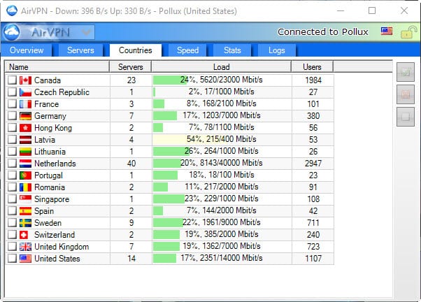 系统中遍布世界各地的各种网络节点信息,并添加了许多行来呈现。他们总部位于澳大利亚,并在美国和荷兰提供 加速器 服务器位置。